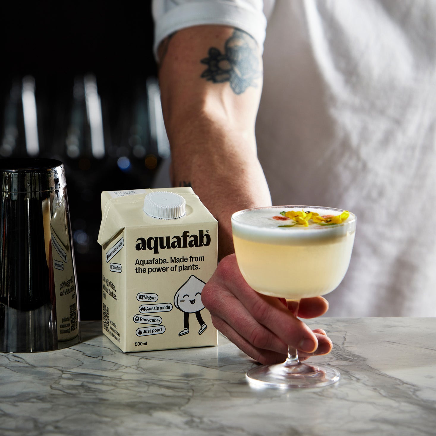 Add ice, gin, lemon juice sugar syrup and aquafab aquafaba to a shaker.