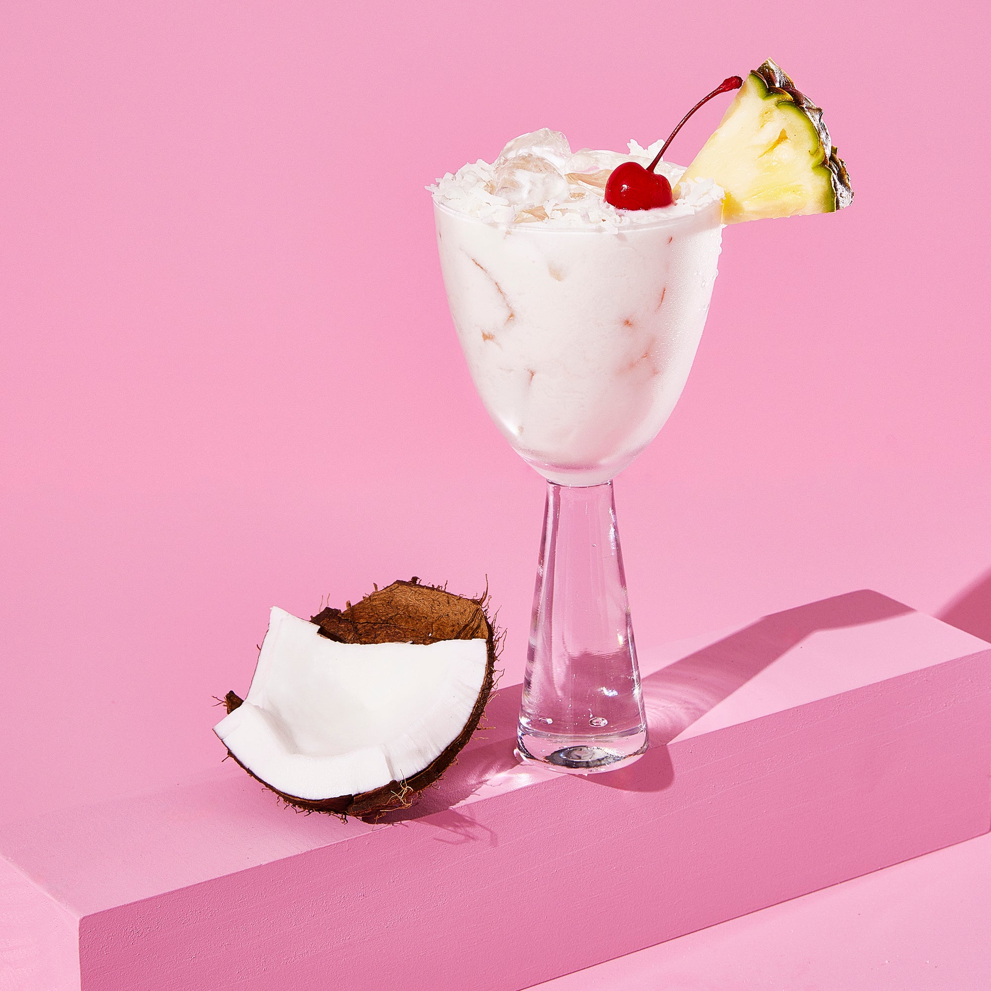 Add ice, pineapple juice, coconut cream and aquafab aquafaba to blender.